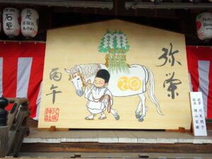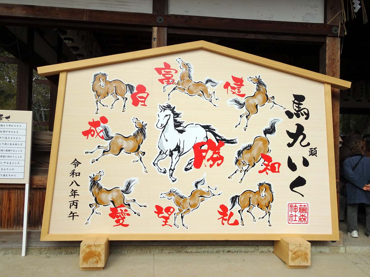 続いて午年なので移動して藤森神社へ。 参拝客が大行列だったので遠くから拝んだだけで、絵馬を奉納、御朱印を頂いて帰りました。