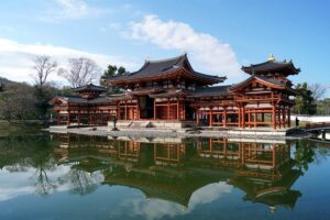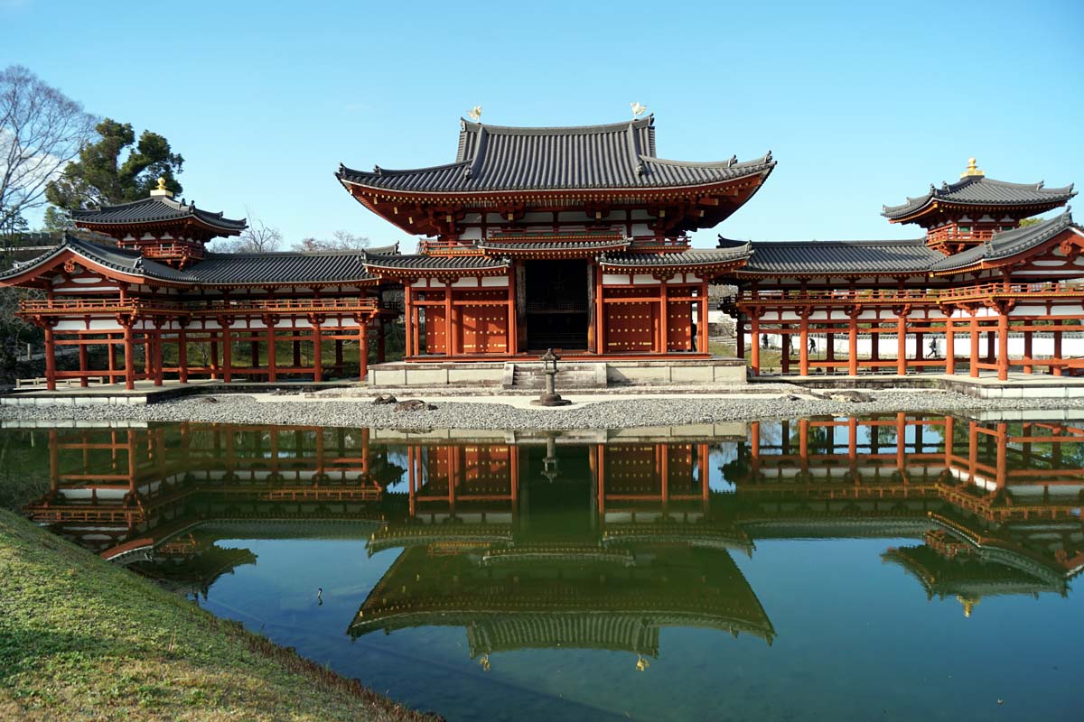 まず平等院を参拝。混雑を避けるために朝一で訪問したのですが、御身拭いということで鳳凰堂に内陣は入ることができませんでした。しかし参拝客も少なく、ゆったりと青空の下で鳳凰堂を見ることができました。