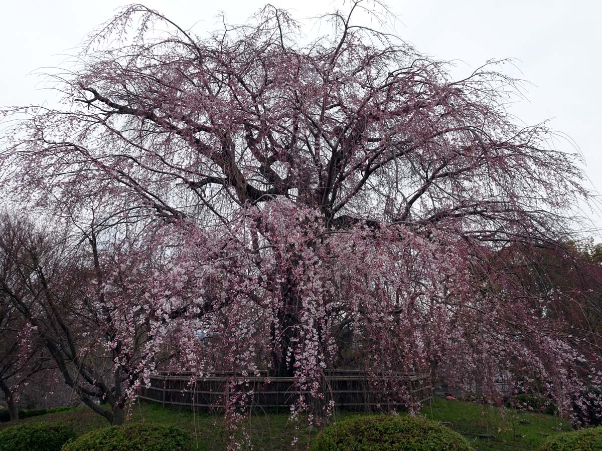 円山公園に立ち寄ると枝垂れ桜が咲き始めていました。