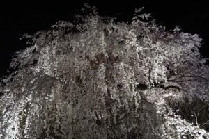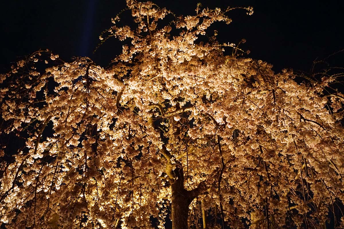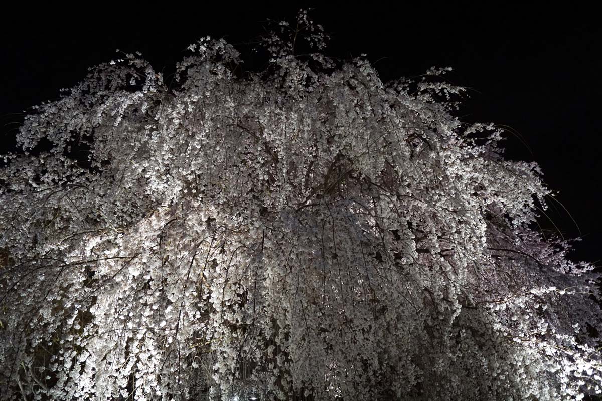 夜の産寧坂、二年坂、ねねの道を抜けて円山公園へ。 有名な枝垂れ桜が満開で見事でした。